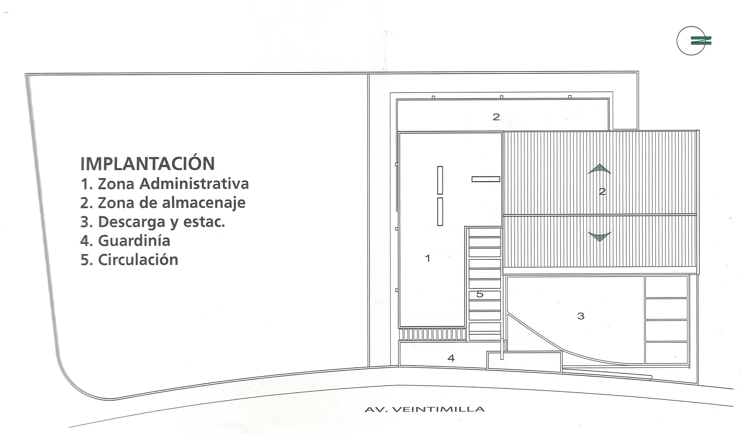 LA UBICACIÓN DE UNA ANTIGUA BODEGA SIRVE DE PARTIDA PARA ESTE PROYECTO QUE ALBERGA OFICINAS,ALMACENES Y BODEGAS, LA INSTALACION EXISTENTE HA SIDO INTERVENIDA PARA LOGRAR UNA TOTAL INTEGRACION CON LA PARTE NUEVA, LA DISPOSICION EN L FACILITA EL DESARROLLO DE LAS DISTINTAS ACTIVIDADES, EL PROYECTO EN UNA ZONA URBANA EN PROCESO DE CONSOLIDACION MANIFIESTA VOLUMENES Y EXPRESIVOS QUE PERMITEN DIFERENCIAR LAS DISTINTAS FUNCIONES.